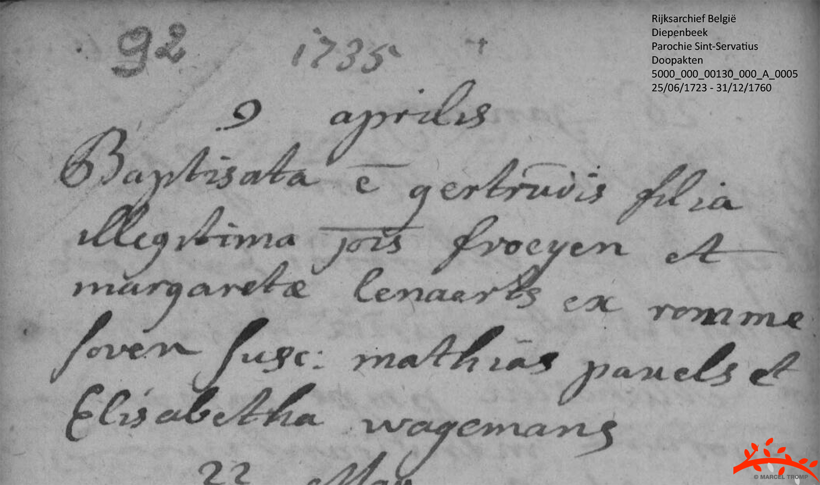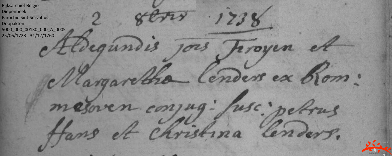 Dit is het tweede huwelijk van Joannes Froyen. Zijn eerste huwelijk was met Christina Creeten.