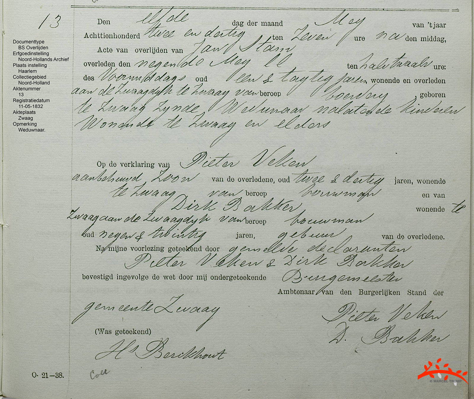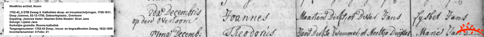 1750, doop RK te Zwaag, geboren op de Overtoom op de Zwaagdijk onder Zwaag |