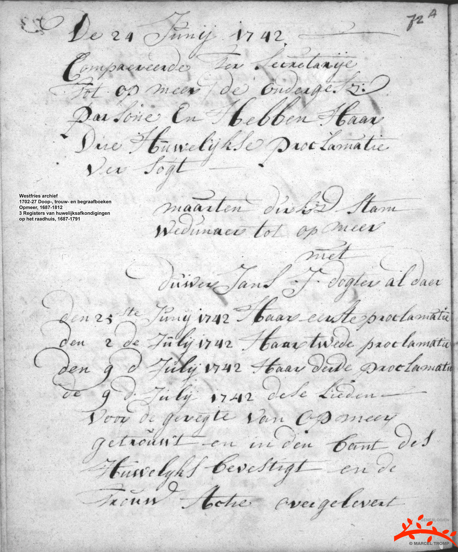 1742, Opmeer, ondertrouw- en huwelijksakte |