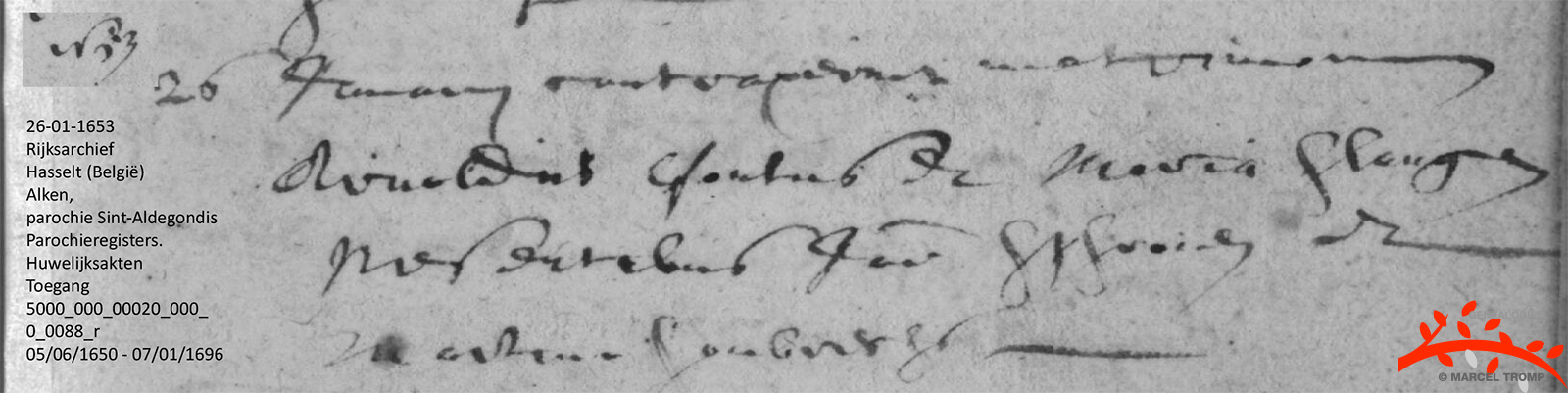 | 1653, trouwen te Alken (Spaanse nederlanden) RK parochie St Aldegondis |