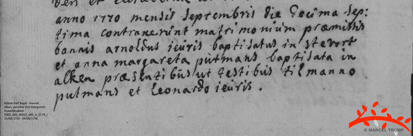 17-09-1770 RK huwelijk St Aldegondis te Alken (Oostenrijkse NL)