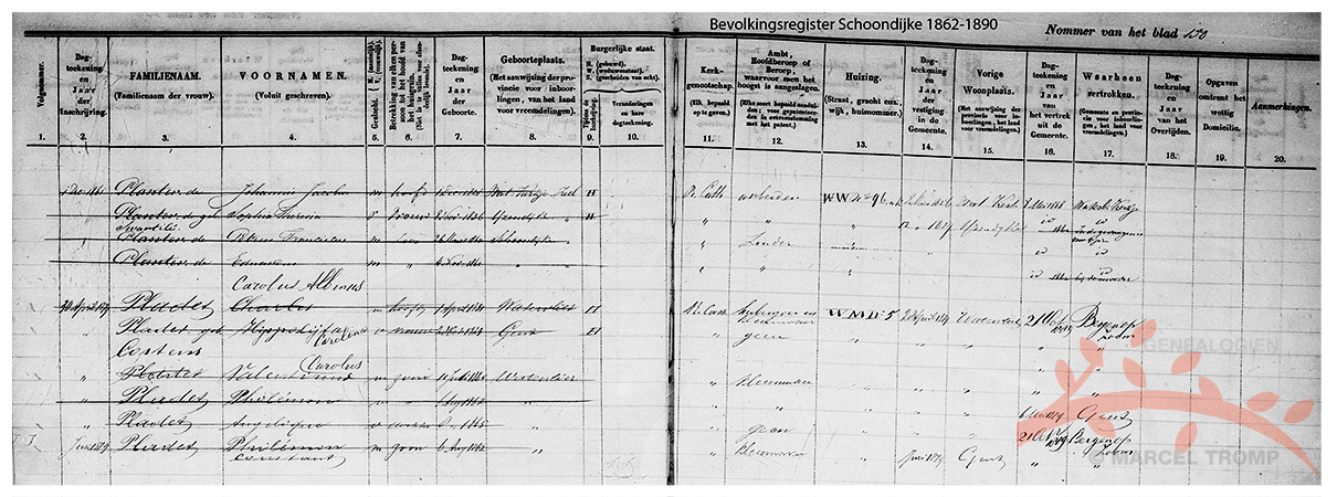 | Op 28 april 1879 verhuist het gezin Pladet - Costens van Watervliet (B) naar Schoondijke in Zeeuws-Vlaanderen |