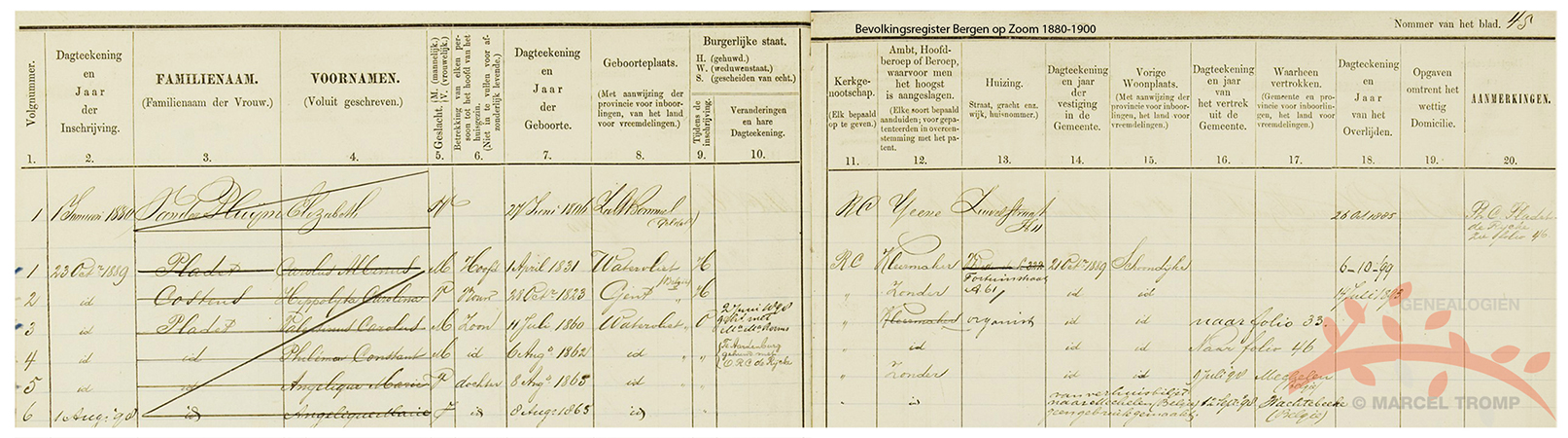 | In 1889 is het gezin van Schoondijke (Zeeland) naar Bergen op Zoom (Noord-Brabant) verhuisd |