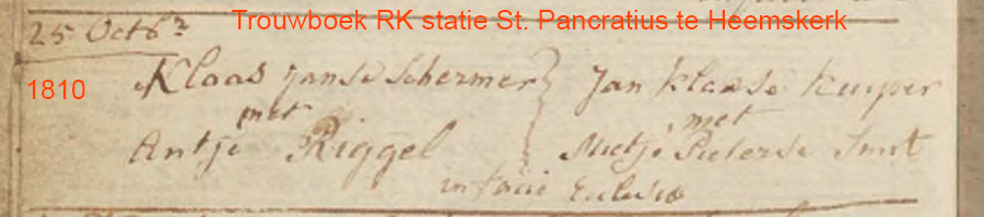 25-10-1810: inschrijving in het Trouwboek van de RK statie St. Pancratius te Heemskerk