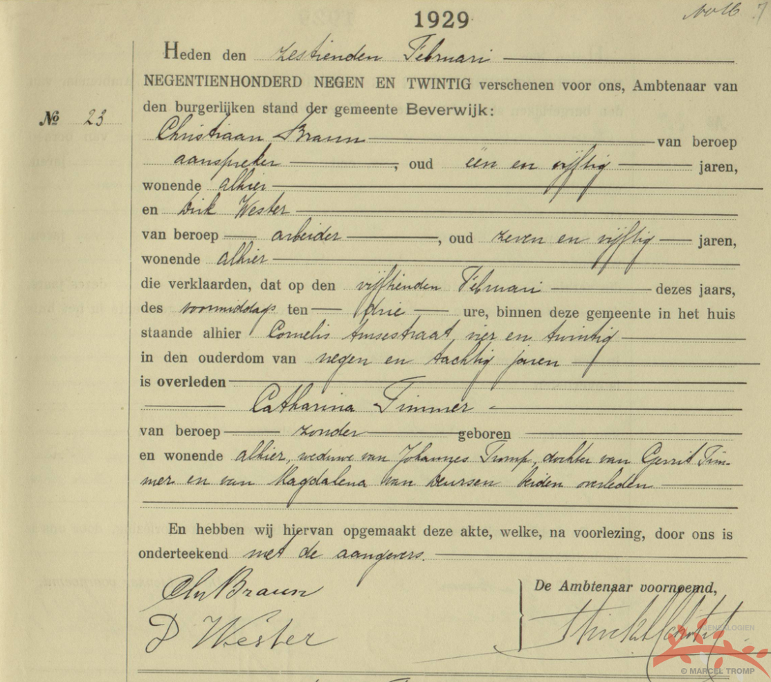 Overlijden Catharina Timmer | 15-02-1929 | |