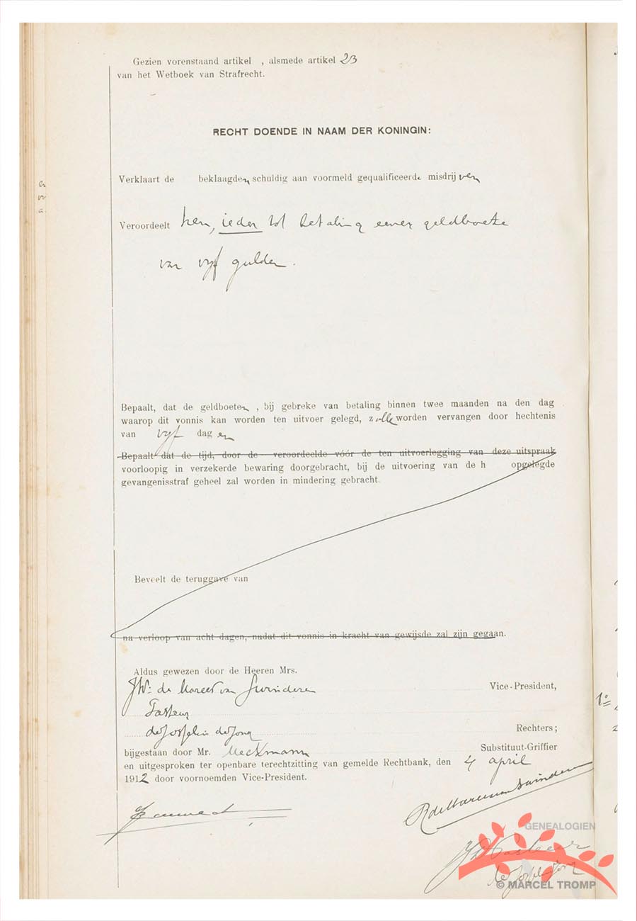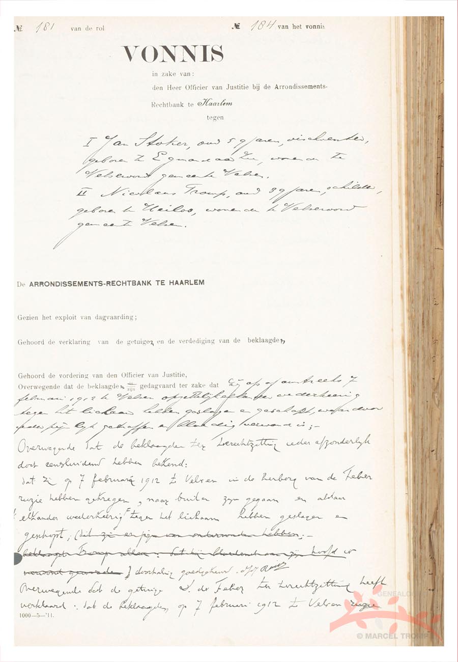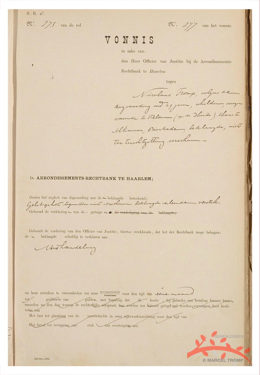 Hieronder volgen twee vonnissen van de Arrondissementsrechtbank te Haarlem uit 1902 en uit 1912 |