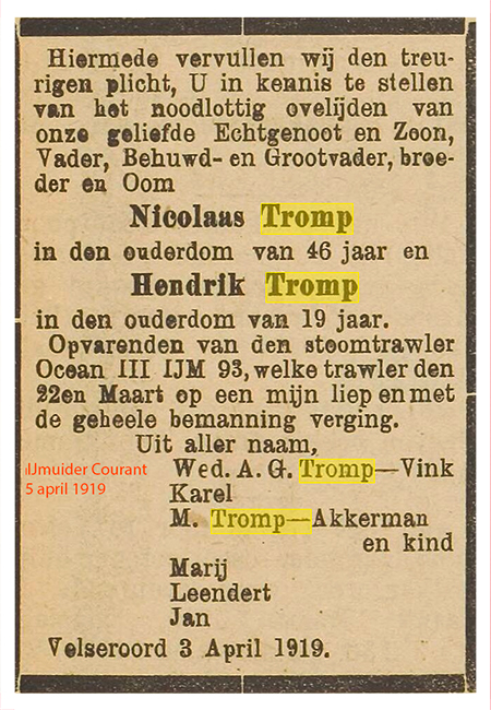 Overlijden Nicolaas Tromp | 22-03-1919 | |