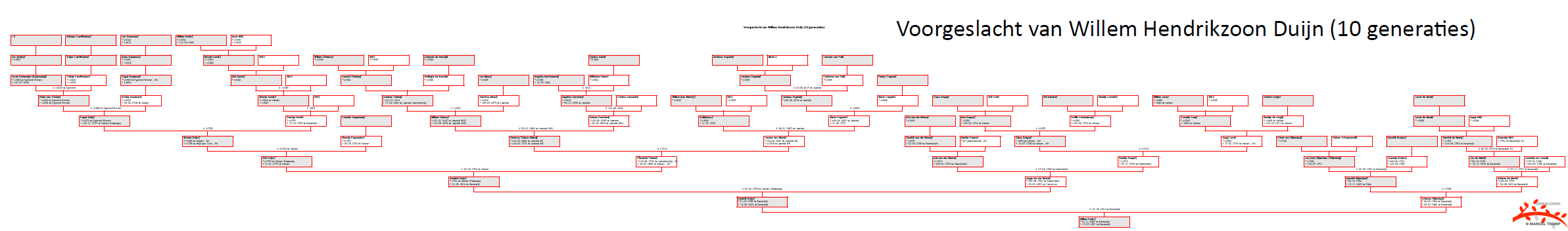 In het ►Jaarboek Oud Castricum van november 2007 is de familiegeschiedenis levendig beschreven en vooral voor ons (Beverwijkse nazaten) van belang is tot en met het echtpaar Duijn-Tielens. In de tabs "NAKOMELINGEN" kunt U de nakomelingen van Jan, Jacob's vader, volgen.