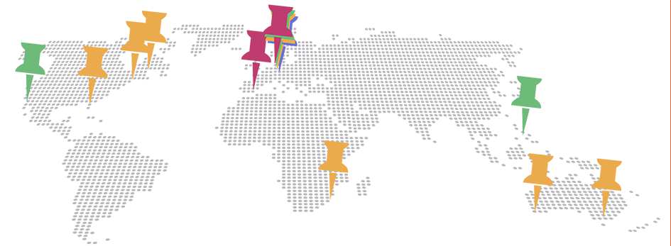 Oorsprong van de vier families in de 17e eeuw | Verspreiding van de vier famlies over de globus in de 21e eeuw | ||||||||||||