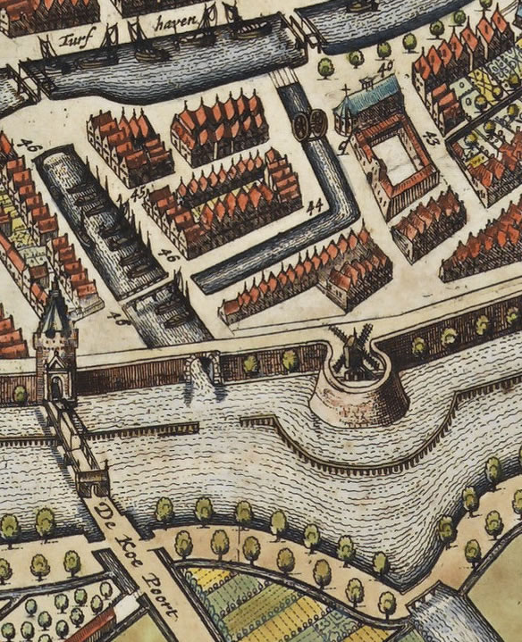 | Dal: zie de letter q: 'Dals kerck nu S. Oieters hof, eertijts het Augustijne Clooster'. →volledige kaart van Frederik de Wit (1698). →Google maps |