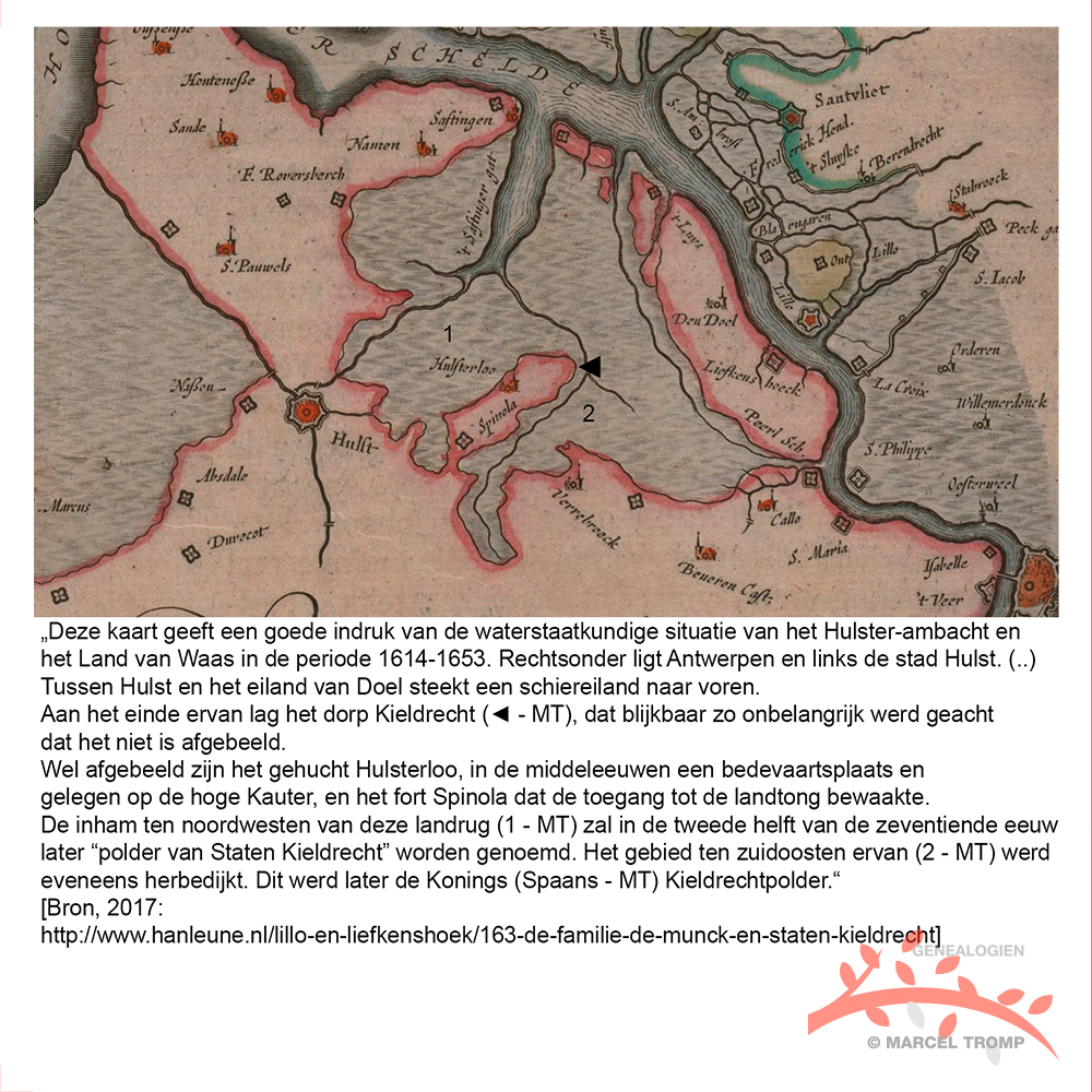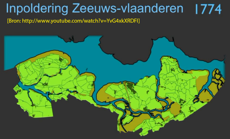 Inpolderingen in 1774: geboorte van Pieter Franciscus Bettram te Hulst (oostelijk ) en peuterjaren van Johannes Franciscus de Rijcke te Sint-Laureins (B, Oost-Vlaanderen), vlakbij de grens van westelijk Staats Vlaanderen. |
