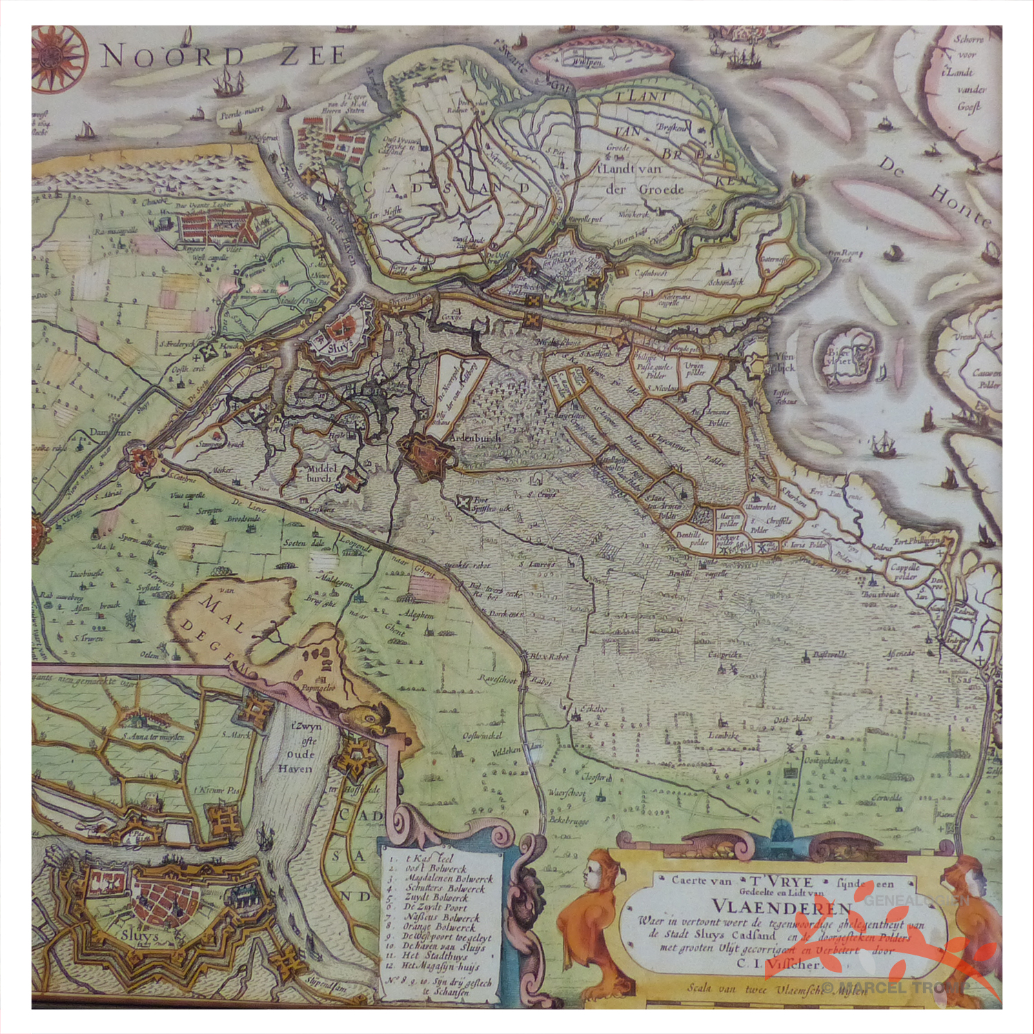 Detail uit Visscher kaart tweede helft 17e eeuw: Vlaanderen met westelijk Staats Vlaanderen |