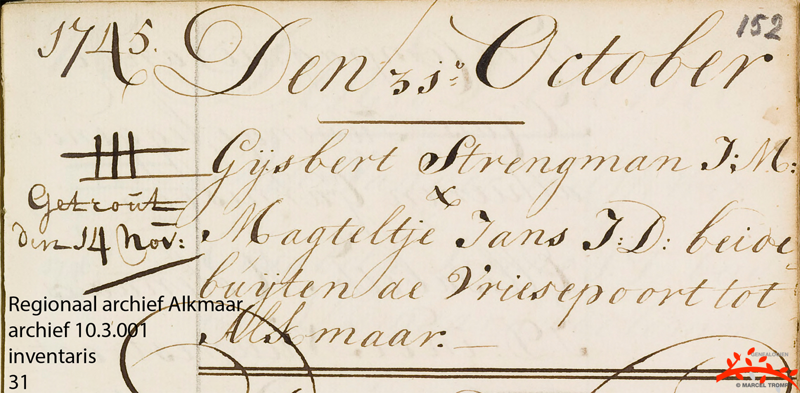 wonende bij het huwelijk beiden "buijten de Vriesepoort tot Alkmaar"