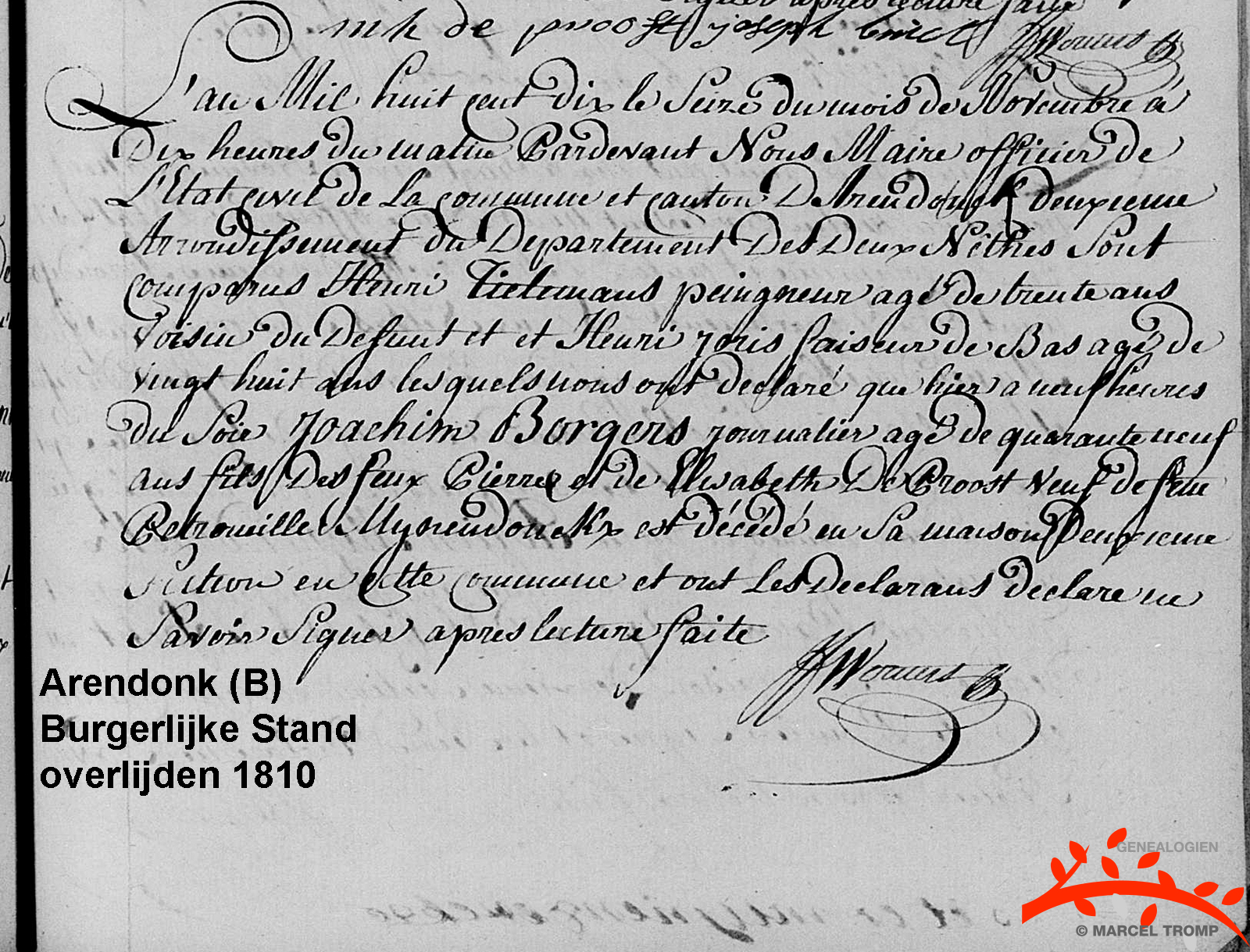 - †15.11.1810 te Arendonk (Keizerrijk Frankrijk)