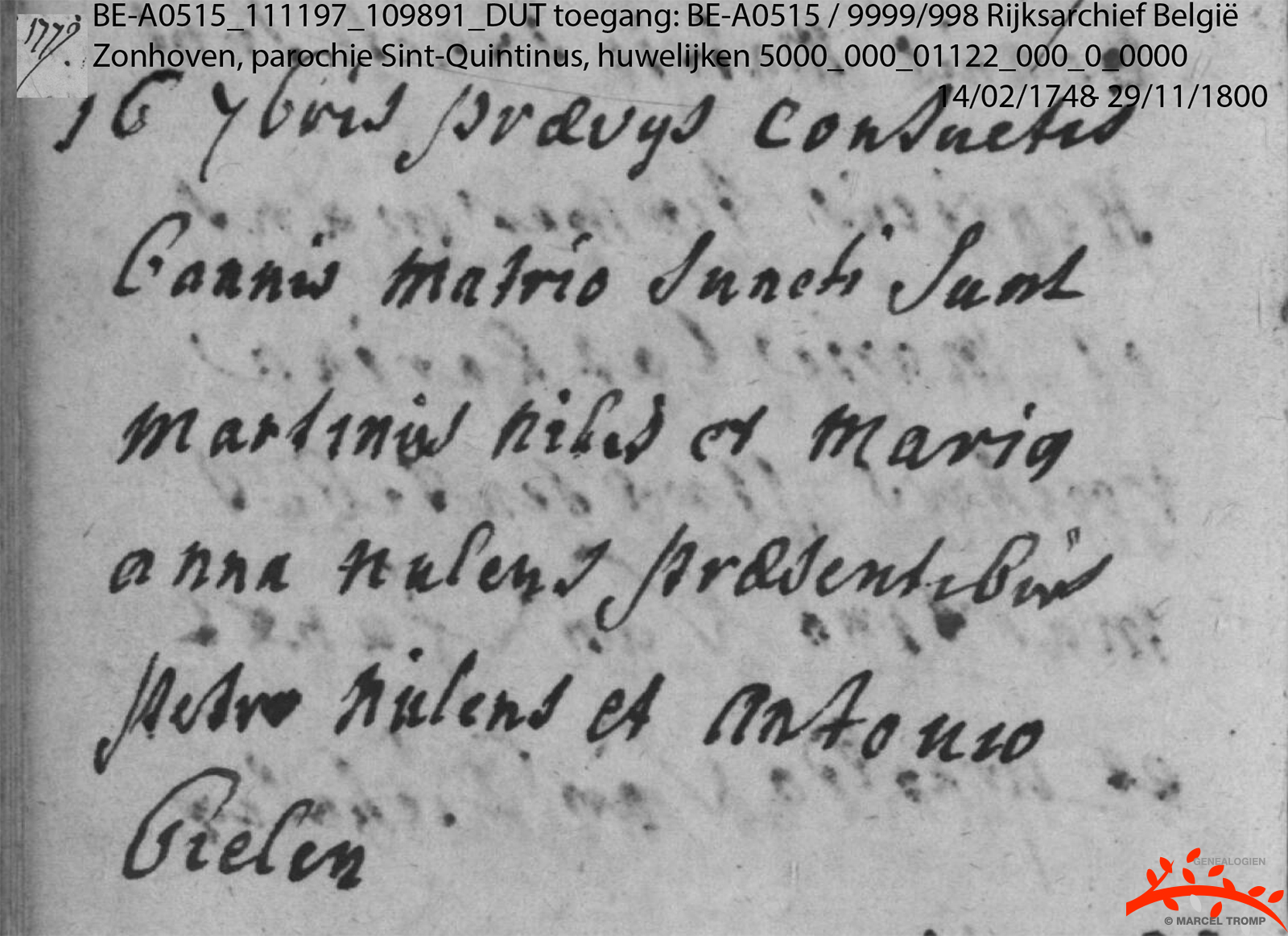 1779, huwelijksakte RK St Quintinus te Zonhoven (Oostenrijkse NL)